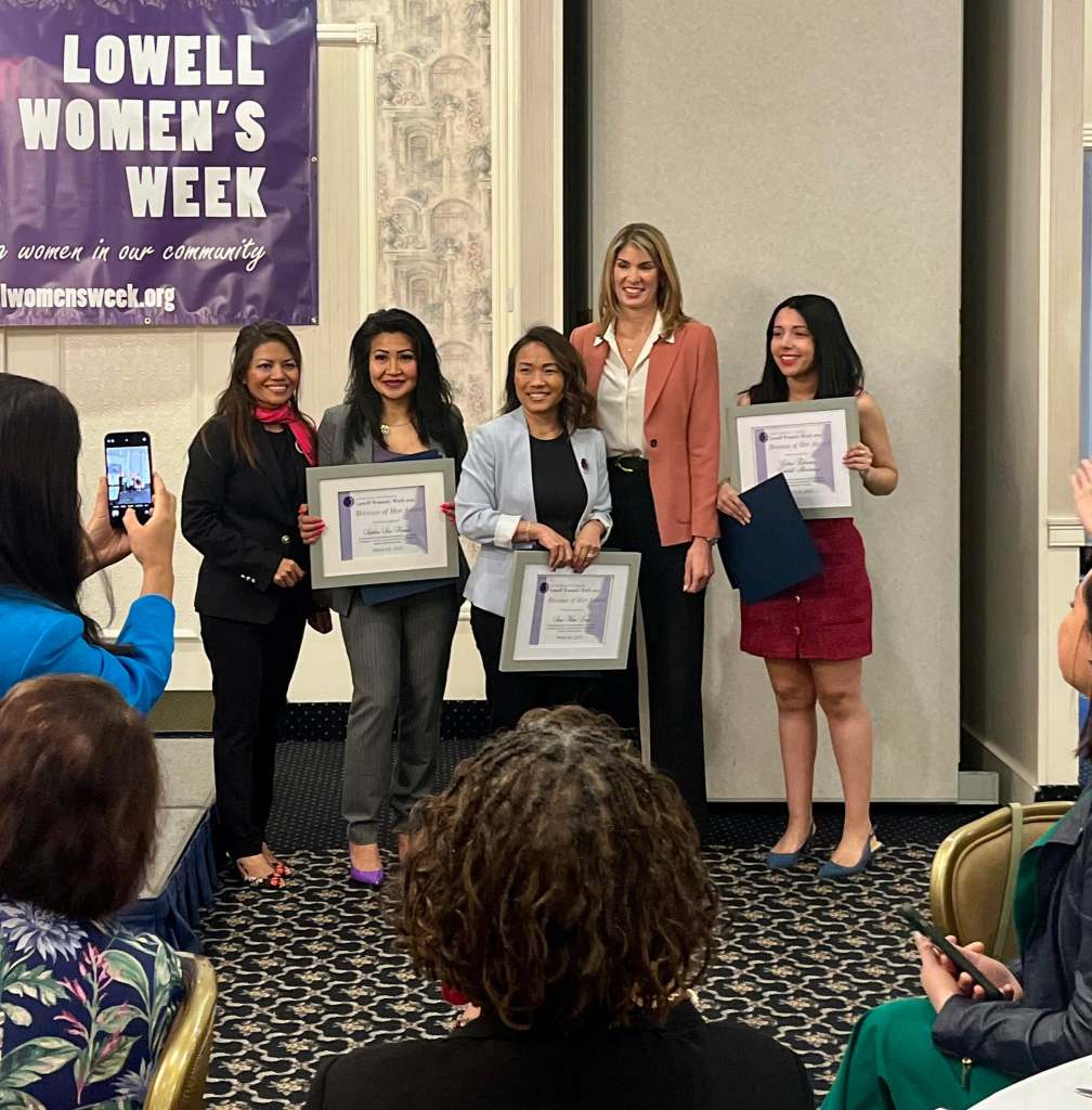 From left to right: Massachusetts State Representative Vanna Howard, BOH Recipient Sophea Sou-Krauss, BOH Recipient Sarah Khun Leng, Congresswoman Lori Trahan, and BOH Recipient Latina Bohemian.